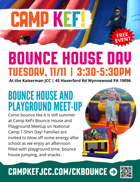 Come bounce like it is still summer at Camp Kef’s Bounce House and Playground Meetup on National Camp T-Shirt Day! Families are invited to blow off some energy after school as you enjoy an afternoon filled with playground time, bounce house jumping, and snacks.