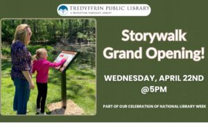 Come to Strafford Park adjacent to the library to celebrate the Grand Opening of Tredyffrin Public Library's Story Walk!