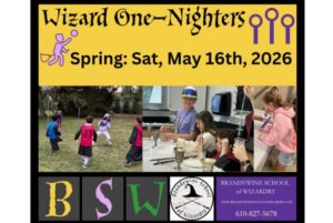 The Brandywine School of Wizardry (BSW) is hosting a Wizardry One-Nighter, a special evening of magic, imagination, and hands-on wizard adventure for ages 6-15!