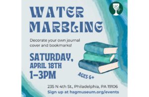 Create and decorate water marble bookmarks and journal covers at Historic St. George's! Note: Water marbling is free for all ages! Bring your own journal, or purchase one for $5.