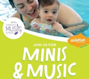 Families are invited to enjoy a morning of music, movement, and splashing fun at the Minis & Music Family Swim at Goldfish Swim School!