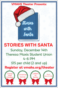 New from Villa Theater! Registration is open for Stories with Santa on December 14th: a special event for children -on Villa Maria’s campus - featuring games, cookies, hot chocolate, and stories. Parents/caregivers are free of charge. Visit vmahs.org/theater for details and registration!