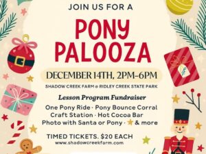 Get ready for a magical afternoon at Pony Palooza at Shadow Creek Farm! Enjoy one timed pony ride, festive crafts, a cozy hot cocoa bar, and fun holiday surprises throughout the farm. Tickets are first come, first serve and sold in timed blocks to keep lines short and the fun […]