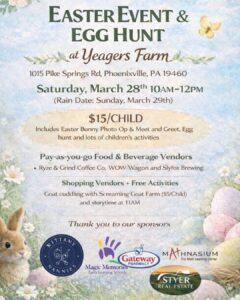 Yeager's Farm is hosting their first ever Easter Event on March 28th 10am - 12pm (rain date March 29th). Tickets are $15/child and required for all ages! Adults are FREE. Children's tickets include an egg hunt, a meet and greet and photos with the Easter Bunny (BYO camera), face painting, balloon animals, bubbles and more.