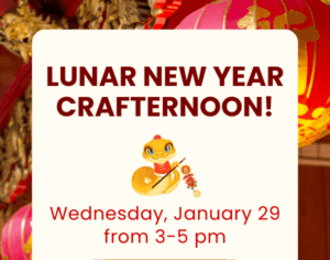 The Chinese New Year, also called Lunar New Year begins on January 29th this year. In Asian cultures, each year is associated with an animal from the zodiac. This year, it is the Year of the Snake! Stop by the children's room anytime between 3–5 PM to create a snake craft. […]