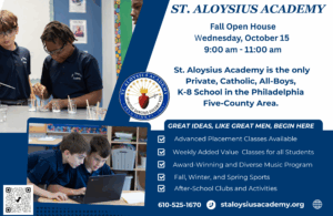 St. Aloysius Academy invites families to experience the gift of an exceptional education at its Fall Open House. As the premier private, Catholic, all-boys K–8 school in the Philadelphia region, St. Aloysius Academy offers a tradition of academic excellence, leadership development, and faith-centered values. During the Open House, visitors will […]