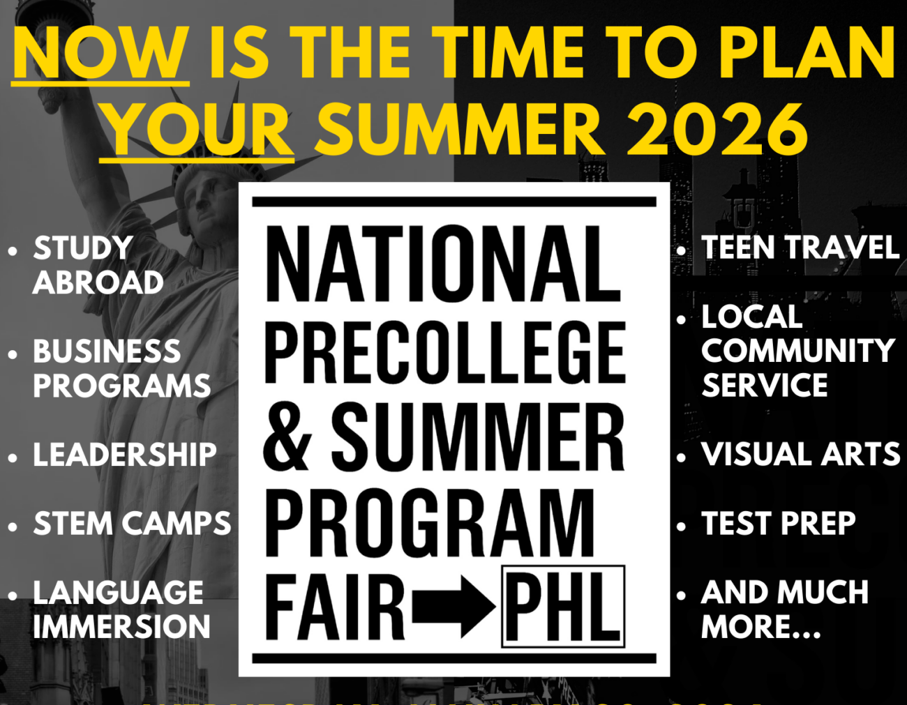 The National Precollege & Summer Program Fairs, a large pre-college and summer opportunity fair, is coming to the Valley Forge Casino Resort Event Center on Wednesday, January 28 from 5:30-8:00 pm.
