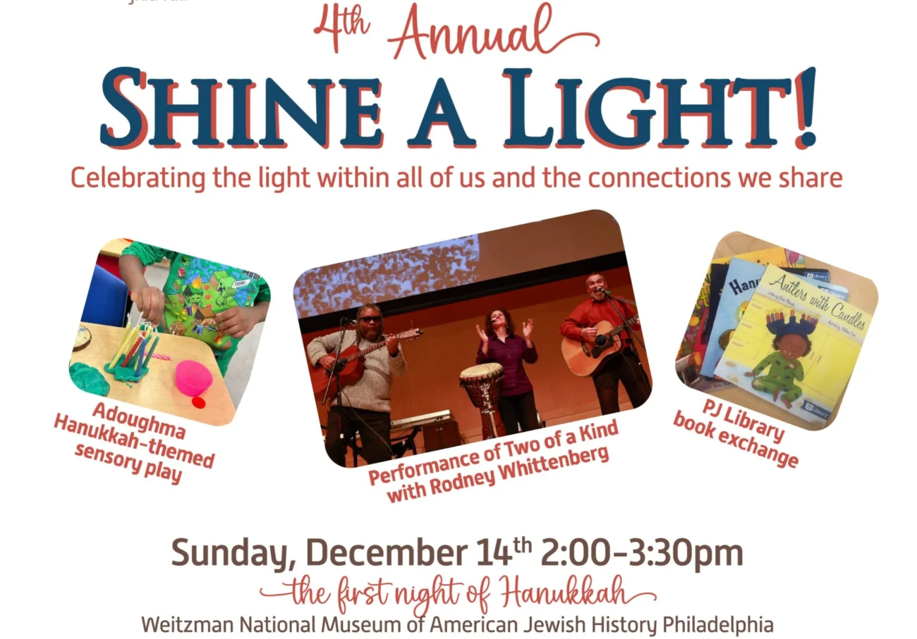 Join The Weitzman for their annual Shine a Light program. This year, on the first night of Hanukkah, celebrate community, creativity, and connection. Enjoy Adoughma Hanukkah-themed sensory play, a lively performance of Two of a Kind with Rodney Whittenberg, and an optional PJ Library book exchange—bring your children’s books and