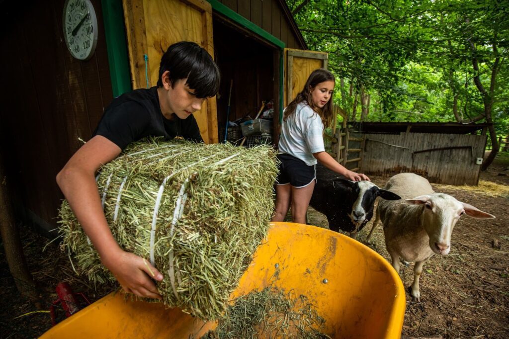After morning activities, children enjoy family-style lunch through SRV’s farm-to-fork food program (included in tuition). Lunch even includes eggs from the school’s own hens. Lunch is followed by a quiet rest period. The afternoon brings more opportunities for discovery and play until the full day ends at 3:00 pm, with extended programming available until 6:00 pm.