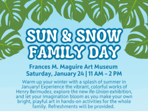 Warm up your winter with a splash of summer in January! Join Sun & Snow Family Day at the Maguire Art Museum, and experience the vibrant, colorful works of Henry Bermudez, explore the “Re-Union” exhibition, and let your imagination bloom as you make your own bright, playful art in hands-on […]